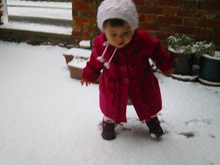マリナは雪の上を歩くと、雪が靴に付くので、とってーとってーと言わんばかりに叫ぶ。笑