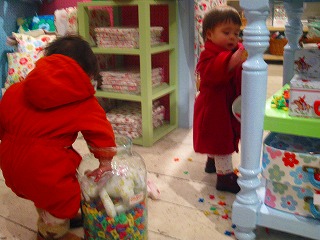 店員さんに注意されるかと思いきや、何も言わないし、ふたりの遊びに参加? 「これいいねー」だって。