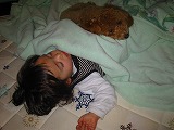 冷え込んで気温はマイナスになることも・・・はぁー。11月終わりから雪もけっこう降り出して、今日も寒いのかぁ・・・。 ふたりはあまりに寒すぎるので、痛い?外に10分でも居たら、泣いて泣いて・・・手は真っ赤にはれて、手袋なんて買ってなかったから、必死で作ったけど、小さいからー(爆) アイにもらったイチゴちゃんの靴下を手袋にしてー(爆)