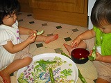 ふたりは、最近は野菜の下ごしらえを喜んでやってくれる。