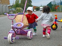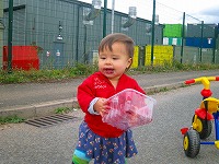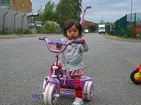 そして、三輪車も好きだから、ブラックベリーを少し摘んでは、三輪車で遊び(まだ自分ではこげないので