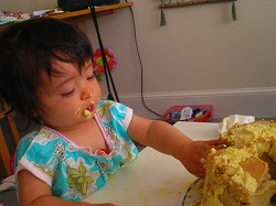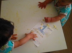 二人とも、手づかみでの食事が大好きだから、ケーキをこんな風に食べれて嬉しかっただろう。ジェレは、1年に1回だからねーなんて言ってたなぁ~笑