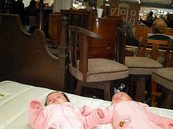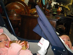 イザ!!!会場に着くとさぁ、赤ちゃん連れを見て、「良かったね!」とニコニコ^-^ そして、家具の物色。やたらと張り切りだしてさぁ。ふたりにまずミルクを飲ませなきゃならないのに、何番!!何番!!はやく~~ってさぁーちょーーちょーーふたりはどうするんだい!